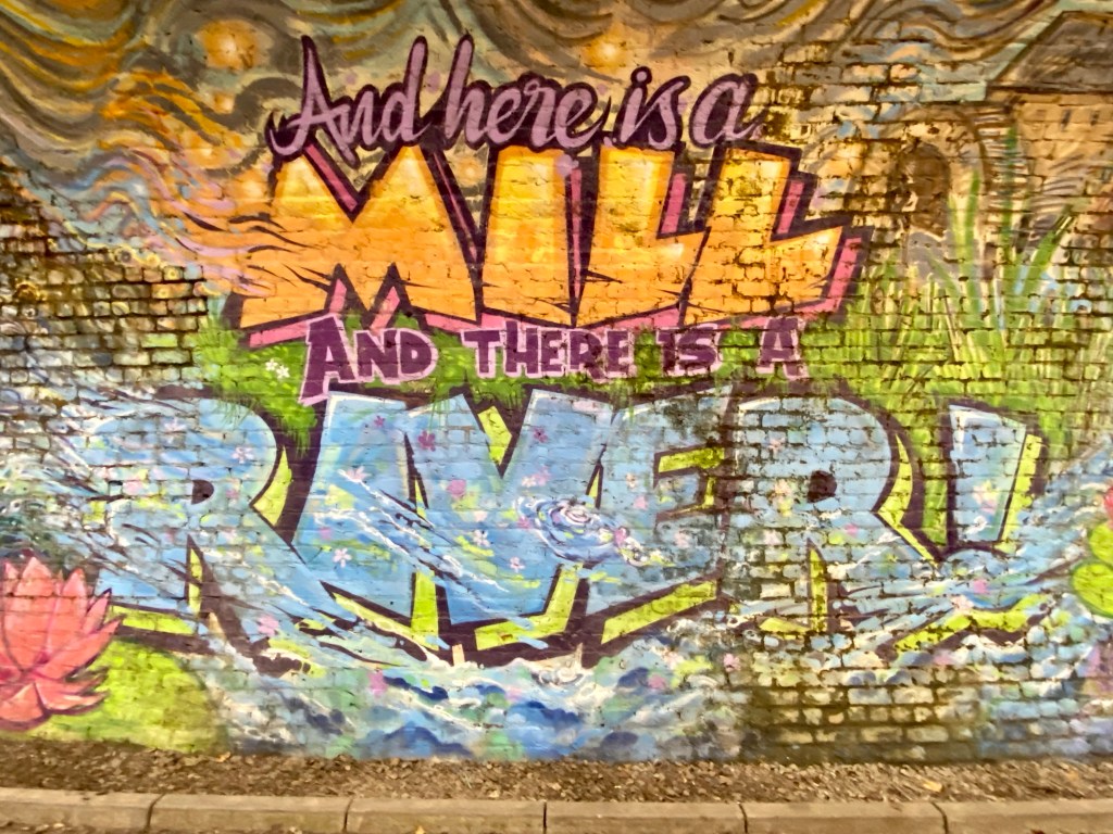‘The final design concept meant that the words of the poem (along one side of the Tunnel) were complemented by the images contained in those words, all drawn from different parts of Colinton and Water of Leith history – rural, artistic, military and industrial.