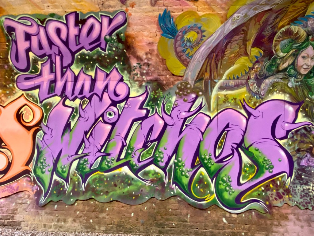 Chris Rutterford led a multi-skilled team of muralists in translating the initial concept into its stunning colourful reality – with resident street artists, Craig Robertson and Duncan Peace responsible for the painting of the Poem itself.’